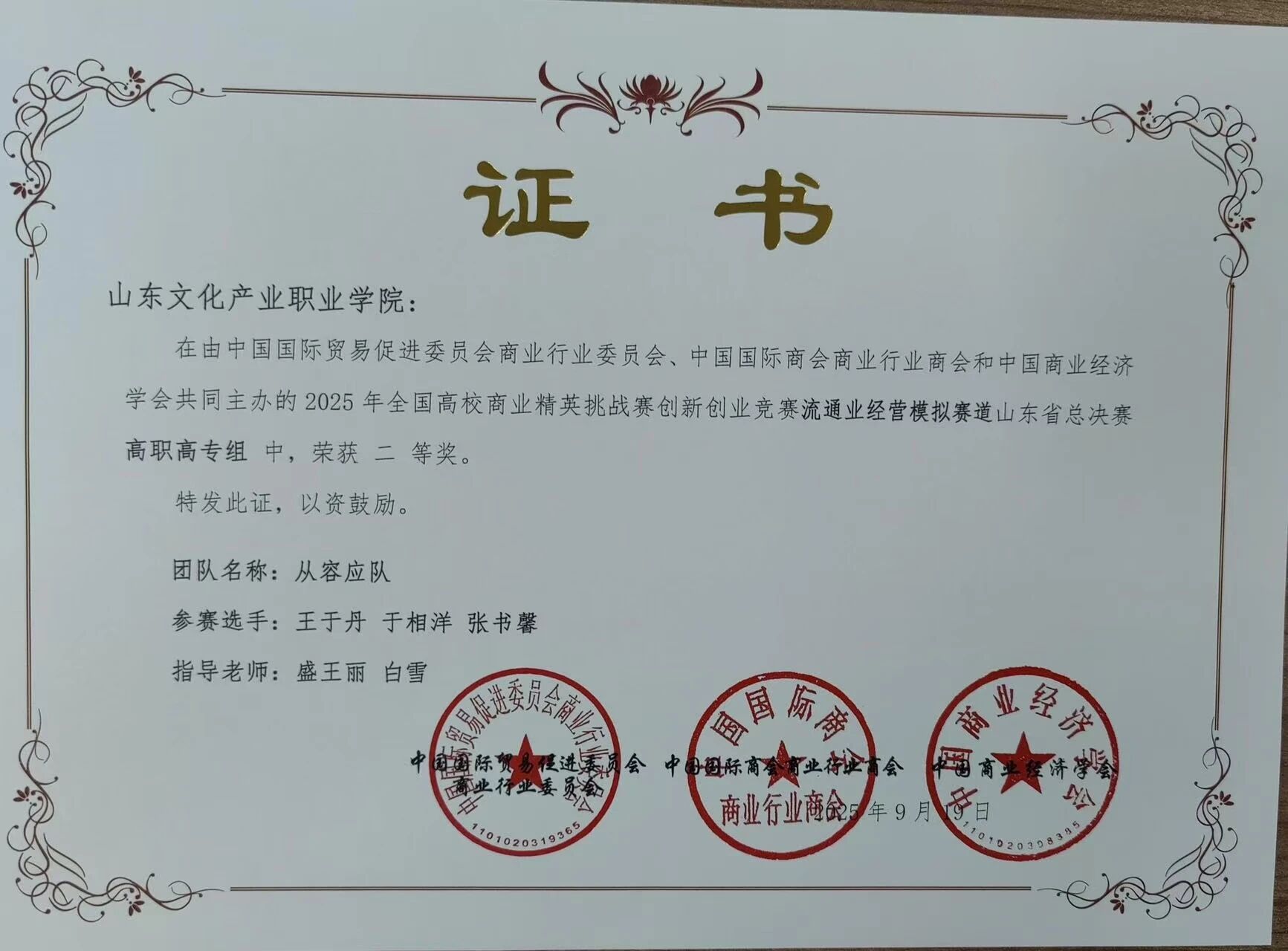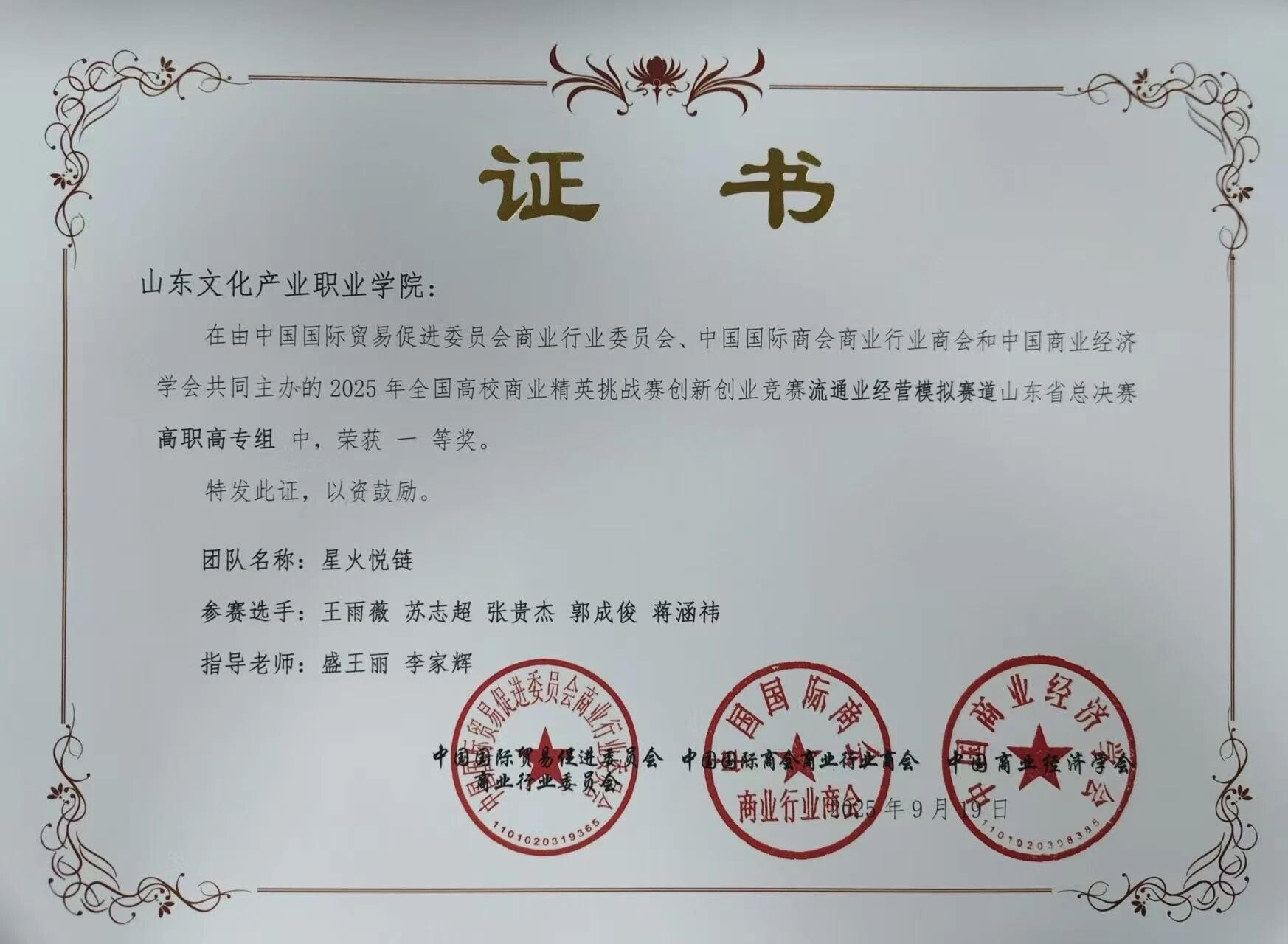 近日,2025年全国高校商业精英挑战赛创新创业竞赛“流通业经营模拟赛道”山东省总决赛圆满落幕。我院选派的多支参赛队伍凭借出色的专业素养、创新的商业思维和卓越的团队协作能力,在激烈竞争中脱颖而出,最终斩获一等奖两项、二等奖一项的骄人战绩!